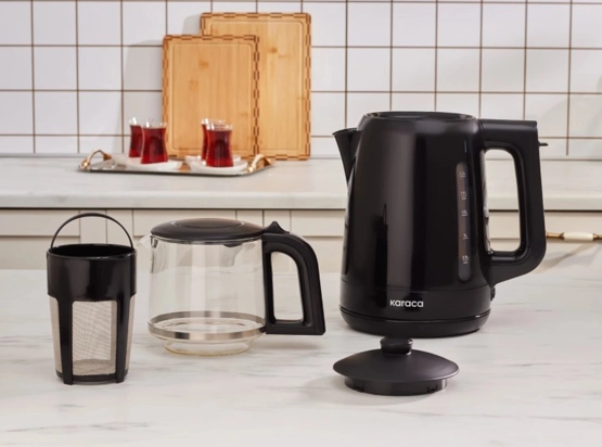 Karaca Mega Tea 1501 Çay Makinesi Tek Seferde 35 Bardak Çay 0,90 Litre Cam Demlik ve 2,2 Litre Kettle geniş kapasitesi sayesinde tek seferde 35 bardak çay hazırlayabilirsiniz. 1500 Watt Güç Yüksek güç, suyu hızla kaynatarak çay demleme süresini en aza indirir. Güçlü ısıtma teknoloisi sayesinde çayınız her zaman hızlıca olur. Kettle Olarak Kullanım Kutu içerisinde kettle için ayrı bir kapak bulunmaktadır, böylece sadece kettle olarak da kullanılabilir. Bu çok yönlü kullanım özelliği, mutfakta yerden tasarruf etmenize yardımcı olur. Otomatik Sıcak Tutma Su kaynadıktan sonra otomatik olarak sıcak tutma özelliği devreye girer. Bu sayede çayınız her zaman servis edilmeye hazır sıcaklıkta kalır. Güvenlik Susuz çalışmama, otomatik kapanma ve aşırı ısı koruma özellikleri ile güvenliği ön planda tutar.
