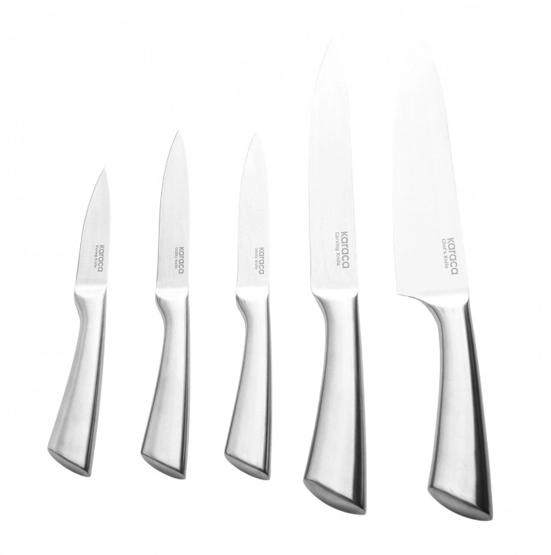 Karaca Retroway 6 Parça Bıçak Seti 1 şef bıçağı/2.5mm: 33.5cm 1 dilimleme bıçağı/2.5mm 33.5cm 2 sebze bıçağı/2.0mm:23.5cm 1 soyma bıçağı/2.0mm:20.3cm stand:19.2*11.2*22.5CM 420 kalite çelik
