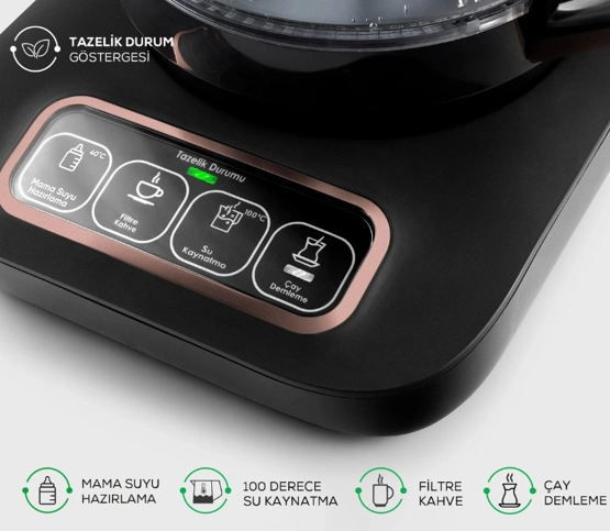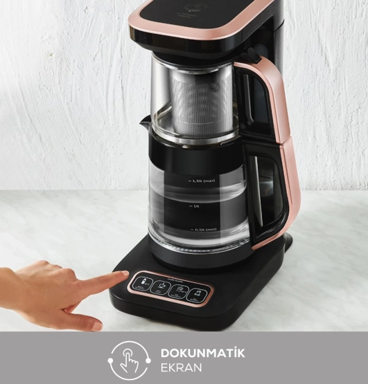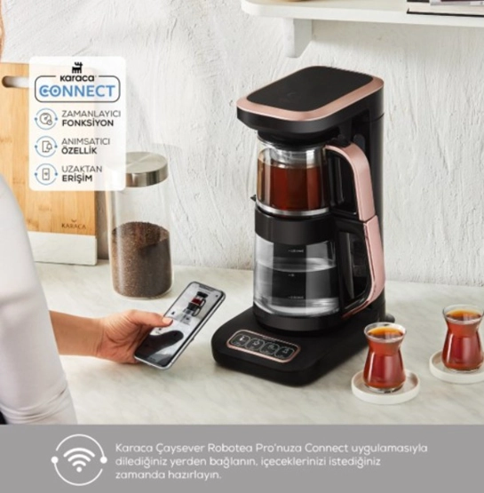 Karaca Robotea Pro Connect 4 in 1 Konuşan Cam Çay Makinesi Siyah - Rose