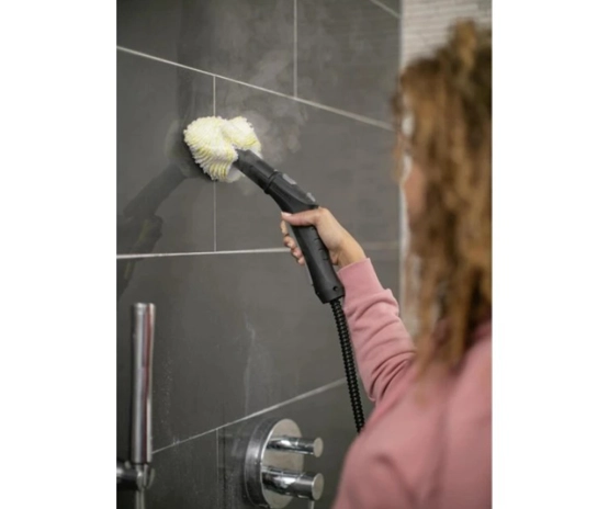 Kullanımı kolay SC 2 EasyFix giriş seviyesi buharlı temizleyici, buhar yoğunluğunu yüzeye ve kir seviyesine uyarlamak için iki aşamalı buhar düzenlemesi sağlar. Cihaz üzerindeki pratik aksesuar saklama alanı ve zemin başlığı için park konumu, daha rahat buharlı temizlik için kullanışlı ayrıntılardır. Esnek bağlantı noktalı EasyFix zemin başlığı mükemmel ergonomiyi garanti eder ve lamel teknolojisi sayesinde mükemmel temizlik sonuçları sağlar. Kullanışlı cırt cırt sistemi sayesinde zemin temizleme bezi, kirle temas etmesine gerek kalmadan hızlı ve kolay bir şekilde zemin başlığına takılabilir ve tekrar çıkarılabilir. SC 2 EasyFix tamamen kimyasal madde kullanmadan temizler ve üniversal olarak kullanılabilir. Kärcher buharlı temizleyiciyle derinlemesine temizlik, tipik ev tipi sert yüzeylerden virüslerin* %99,999'una kadarını ve tüm yaygın ev bakterilerinin** %99,99'unu temizler. Çeşitli aksesuarların kullanılmasıyla fayanslar, ocaklar, davlumbazlar ve en küçük boşluklar dahi hijyenik bir şekilde temizlenir. İnatçı kirler bile güvenilir bir şekilde çıkarılır.