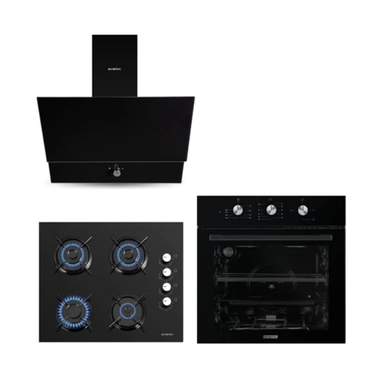 Kumtel siyah cam ankastre set içerisinde bir adet davlumbaz, bir ocak ve bir adet fırın yer alır. Siyah renkte üretilen bu set, mutfakta yemek pişirmek için gerekli üç ürünü içinde barındırır. Harr teknolojisiyle donatılan Kumtel Dizayn siyah cam ankastre set kullanımı %40 enerji tasarrufu sağlar. Minimum enerjiyle maksimum ısı değeri vermeyi sağlayan bu teknoloji, aynı zamanda ürünlerin temizliğini de kolaylaştırır. Açık rezistans sistemiyle kusursuz pişirme sağlayan siyah Kumtel ankastre set modern, şık ve kullanışlı tasarımıyla mutfaklarınıza çok yakışabilir. Kolay kullanım imkanı sunan Kumtel Dizayn siyah cam ankastre set (DA6-830 siyah davlumbaz + KO-40TAHDF ankastre siyah ocak + B66-S2 (MT) (3 Pro 3 düğme ) siyah cam fırın) ile şahane yemekler yaparken, mutfağınızın kötü kokmasını önleyebilirsiniz. Kumtel Siyah Davlumbaz ile Kötü Kokulara Son Şık bir tasarıma sahip olan Kumtel Dizayn ankastre set içerisinde yer alan davlumbaz ile yemek pişirirken oluşabilecek istenmeyen koku ve dumandan kurtulabilirsiniz. Siyah bir cam gövde ile tasarlanan siyah cam ankastre set Kumtel markasının kalitesine sahiptir. 3 hız kademeli çalışma ayarının bulunması avantaj sağlar. Led aydınlatma özelliği sayesinde, davlumbazın ışığından yararlanarak yemek pişirebilirsiniz. Mekanik kontrol paneli kolay anlaşılabilir olduğundan, davlumbazı kontrol etmek oldukça basittir. Hızlı ve pratik olarak çıkarılabilen alüminyum filtreler sayesinde, davlumbazda oluşan kir ve yağı kolayca temizleyebilirsiniz. Dilediğiniz takdirde bu filtreyi bulaşık makinesinde yıkayabilirsiniz. Şık Tasarımı ile Kumtel Ankastre Siyah Ocak 8 mm temperli cam sayesinde ısıya ve darbelere dayanıklı olan Kumtel ocak, aynı zamanda doğalgazdan LPG’ye dönüş için de uygunluk gösterir. Yandaki düğmeleri kullanarak ocağı kolay bir şekilde kullanabilir, otomatik çakmağı sayesinde pratik ateşleme yapabilirsiniz. Emaye ızgarası ile birlikte mavi ateş ve düzenli yanma özelliği sayesinde, ocak üzerinde kullandığınız tencere ve tavalar zarar görmez. Kumtel Dizayn siyah cam ankastre set (DA6-830 siyah davlumbaz + KO-40TAHDF ankastre siyah ocak + B66-S2 (MT) (3 Pro 3 düğme ) siyah cam fırın) satın alarak, ihtiyacınız olan tüm ürünlere tek seferde sahip olabilirsiniz. Kolay Kullanımı ile Kumtel Ankastre Siyah Cam Fırın İçinde pek çok farklı yiyecek yapabileceğiniz Kumtel ankastre fırının, siyah camdan olan kontrol paneli oldukça şık bir görünüme sahiptir. 3 farklı pişirme fonksiyonunu kullanarak yemek, pasta, börek gibi farklı türde yiyecekleri pişirebilirsiniz. Kumtel Dizayn siyah cam ankastre set (DA6-830 siyah davlumbaz + KO-40TAHDF ankastre siyah ocak + B66-S2 (MT) (3 Pro 3 düğme ) siyah cam fırın) içinde bulunan fırında, 2 adet geniş emaye tepsi ve tel ızgara yer alır. Ayarlanabilir termostat ve zil ile yemekleriniz piştiğinde sizi uyarır. Fırının iç kısmı güçlü bir aydınlatmaya sahiptir. Isıya dayanıklı, kolay sökülebilir çift cam kapaklarını kolayca temizleyebilirsiniz. Fırın tepsisine koyacağınız 1 bardak su ile son ayarda 10 dakika çalıştırdığınız takdirde, fırının içerisinde bulunan yağ ve kirlerin tamamı arınmış olur.