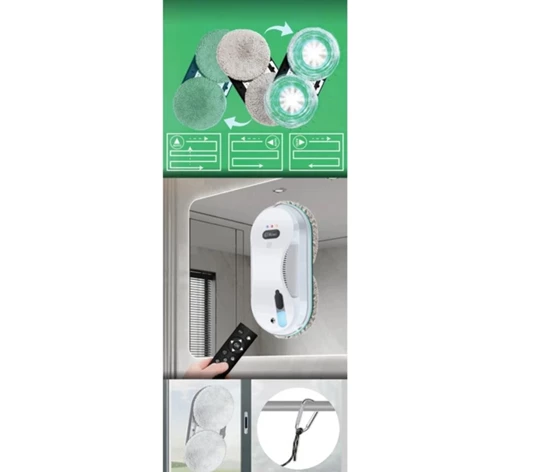 Her türlü cam kalınlığına uygundur. Yapay zeka ile temizleme teknolojisi. 3 tip otomatik çalışma modu. Ultrasonik temizleme sıvısı püskürtücü. Temizleme tamamlandıktan sonra otomatik durma. Yedek güç için dahili pil. Düşme korumalı kontrol algoritması. Otomatik pencere kenarı algılama. Mikrofiber bezler. Yüksek mukavemetli güvenlik halatı 4m. Uzaktan kumanda. Masa ve mutfak tezgahı gibi yatay yüzeyler için otomatik temizleme modu. Paket içeriği: pencere temizleme robotu, uzaktan kumanda, güç adaptörü (4m kablo), temizleme pedi (8 adet), temizleme halkası (2 adet), emniyet halatı, kullanım kılavuzu, su şişesi, cam sileceği.
