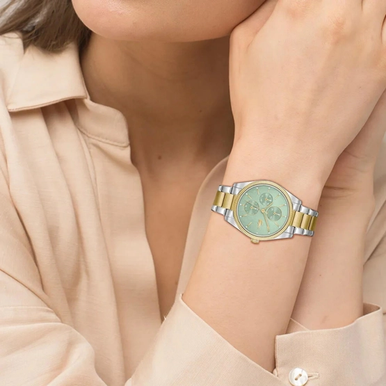 Kasa Çapı: 36 mm - Kasa Şekli: Yuvarlak - Kasa Materyali: Çelik - Kasa Rengi: Metalik Gri - Kordon Materyali: Çelik - Kordon Rengi: Altın / Metalik- Kadran Rengi: Yeşil - Kadran Işığı: Yok - Taş: Yok - Çalışma Şekli: Analog - Teknolojisi: Quartz - Takvim: Var - Kronometre: Yok - Alarm: Yok - Cam Özelliği: Mineral - Özellik: - Su Geçirmezlik: 5 ATM - Garanti Süresi: 2 YIL - Cinsiyet: Kadın