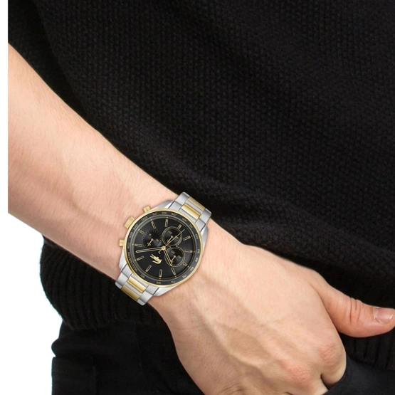 Kasa Çapı: 42 mm - Kasa Şekli: Yuvarlak - Kasa Materyali: Çelik - Kasa Rengi: Altın/Gümüş - Kordon Materyali: Çelik - Kordon Rengi: Altın/Gümüş- Kadran Rengi: Siyah - Kadran Işığı: Yok - Taş: Yok - Çalışma Şekli: Analog - Teknolojisi: Quartz - Takvim: Yok - Kronometre: Var - Alarm: Yok - Cam Özelliği: Mineral - Özellik: - Su Geçirmezlik: 5 ATM - Garanti Süresi: 2 YIL - Cinsiyet: Erkek