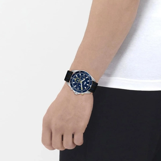 Kasa Çapı: 43 mm - Kasa Şekli: Yuvarlak - Kasa Materyali: Çelik - Kasa Rengi: Metalik Gri - Kordon Materyali: Silikon - Kordon Rengi: Mavi- Kadran Rengi: Lacivert - Kadran Işığı: Yok - Taş: Yok - Çalışma Şekli: Analog - Teknolojisi: Quartz - Takvim: Var - Kronometre: Var - Alarm: Yok - Cam Özelliği: Mineral - Özellik: - Su Geçirmezlik: 5 ATM - Garanti Süresi: 2 YIL - Cinsiyet: Erkek