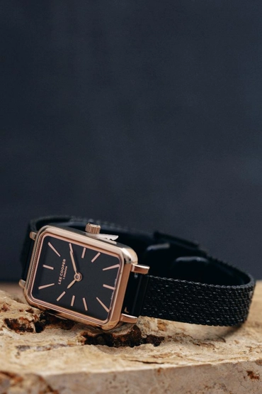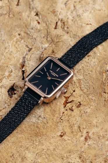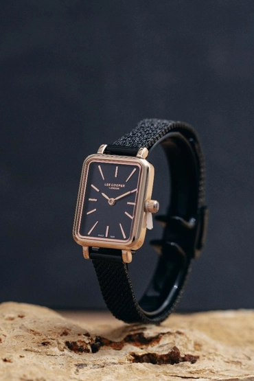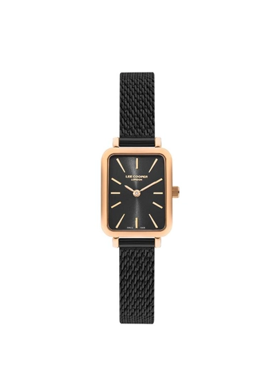 Lee Cooper LC07815 Dikdörtgen 6 Renk Hasır Kordon Kadın Kol Saati (Altın-Siyah)