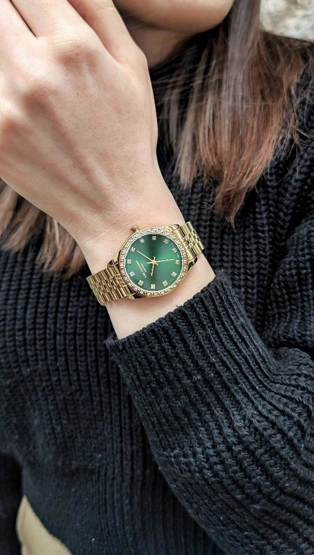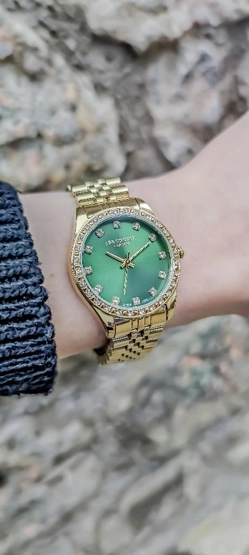 Lee Cooper LC07818.170 Taşlı Tasarım Metal Kordon Metal Kasa 3 ATM Suya Dayanıklı Altın Renk Kadın Kol Saati Renkli