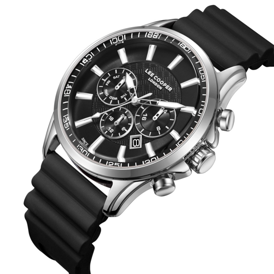 Lee Cooper LC08170.351 Silikon Kordon Metal Kasa 5 ATM Suya Dayanıklı Siyah Renk Erkek Kol Saati