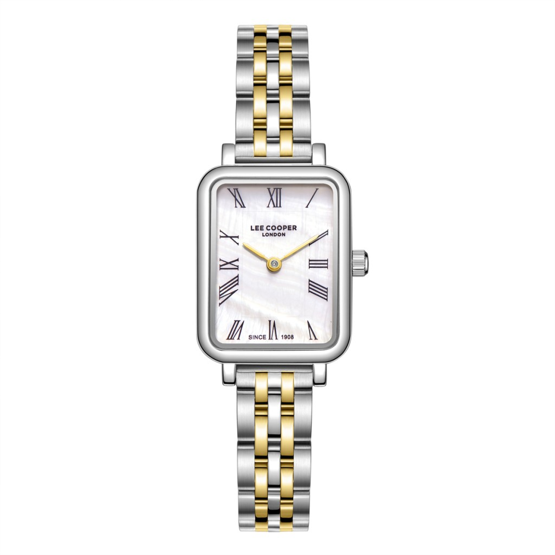 Lee Cooper LC08232.220 Dikdörtgen Kasa Romen Rakamlı 3 Atm Suya Dayanıklı Metalik-Altın Renk Kadın Kol Saati Çok Renkli