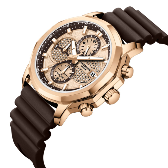Lee Cooper LC08238.472 Silikon Kordon Metal Kasa 5 ATM Suya Dayanıklı Kahverengi Renk Erkek Kol Saati Çok Renkli