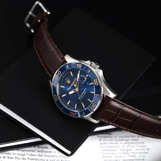 Maserati R8851100004 10 ATM Suya Dayanıklı Deri Kordon Kahverengi-Lacivert Erkek Kol Saati