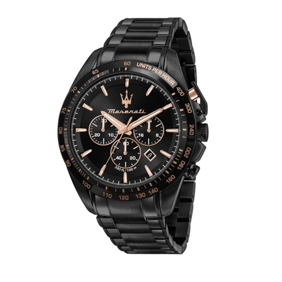Maserati R8873612048 Çelik Kronograf Tachymeter 10 Atm Su Geçirmez İtalyan Dizayn Vidalı Tepe Takvimli Siyah Renk Erkek Kol Saati