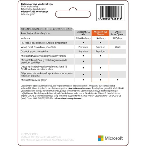 Microsoft 365 Bireysel Türkçe - Kutu Lisans 1 Yıl Yok