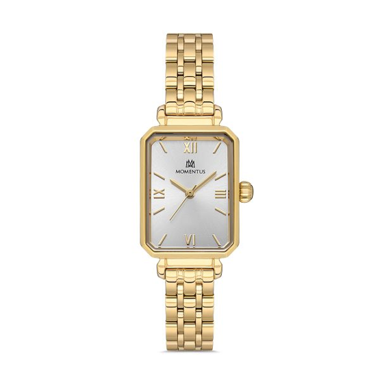 Momentus CS223G-02SG Dikdörtgen Kadranlı Çelik Kordon Çelik Kasa 3 ATM Suya Dayanıklı Altın Renk Kadın Kol Saati
