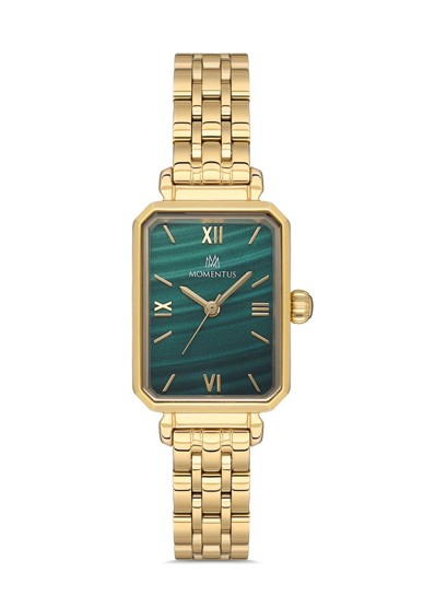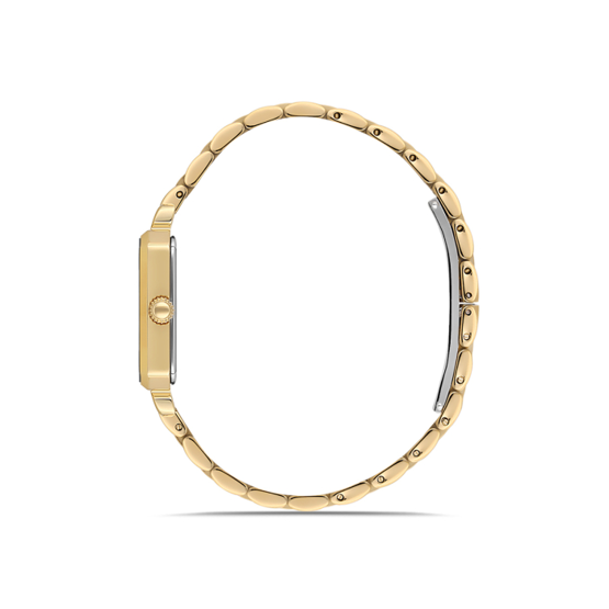 Momentus CS223G-15SG Dikdörtgen Kadranlı Çelik Kordon Çelik Kasa 3 ATM Suya Dayanıklı Altın Renk Kadın Kol Saati