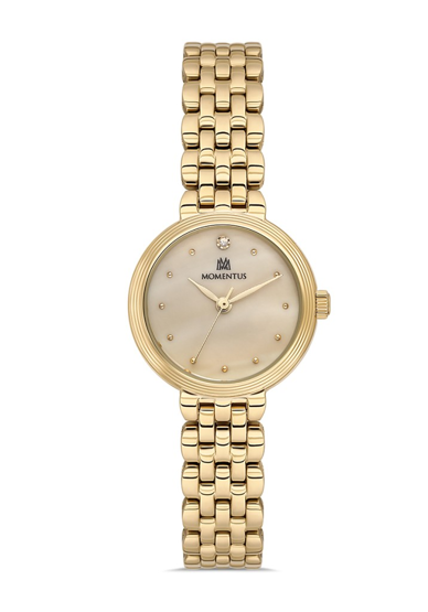 Momentus CW298G-08SG Çelik Kasa Çelik Kordon 3 Atm Suya Dayanıklı Altın Renk Kadın Kol Saati