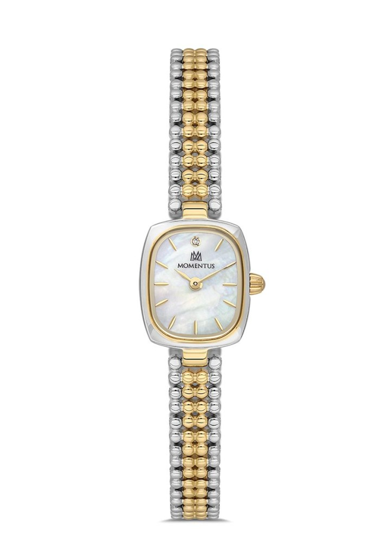 Momentus CW314T-09SG Minimal Tasarım Sedefli Dikdörtgen Kadran Çelik Kordon Çelik Kasa 3 ATM Suya Dayanıklı Metalik-Altın Renk Kadın Kol Saati Çok Renkli