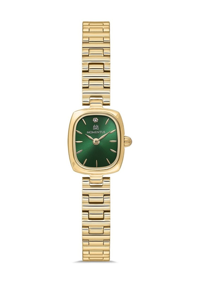 Momentus CW317G-15SG Minimal Taşlı Tasarım Dikdörtgen Kadran Çelik Kordon Çelik Kasa 3 ATM Suya Dayanıklı Altın Renk Kadın Kol Saati Çok Renkli