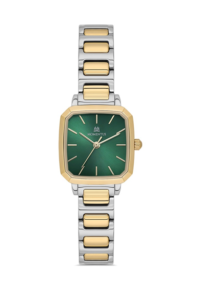 Momentus CW321G-15TG Kare Kadranlı Çelik Kordon Çelik Kasa 3 ATM Suya Dayanıklı Metalik-Altın Renk Kadın Kol Saati Çok Renkli