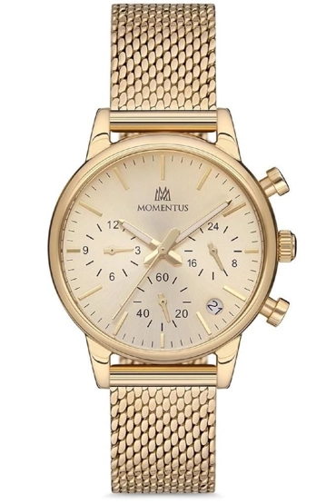 Momentus CW335G-08SG Tüm Fonksiyonları Aktif 5 ATM Suya Dayanıklı Hasır Kordon Altın Renk Kadın Kol Saati