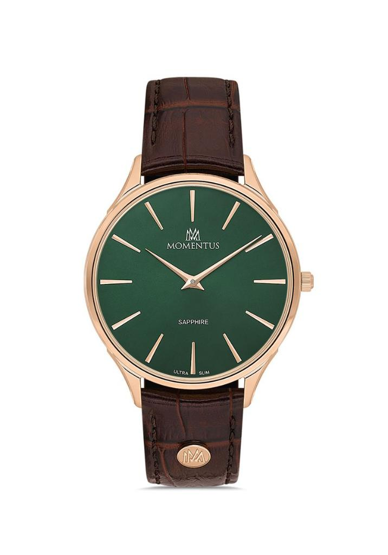 Momentus EM349R-15KR Deri Kordon Safir Çizilmez Cam Çelik Kasa Kahverengi Erkek Kol Saati Çok Renkli