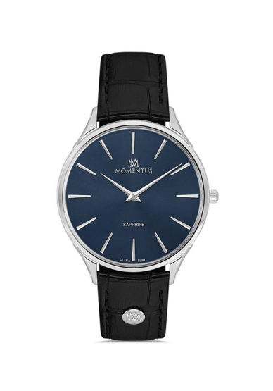 Momentus EM349S-11BS Deri Kordon Safir Çizilmez Cam Çelik Kasa Siyah Renk Erkek Kol Saati