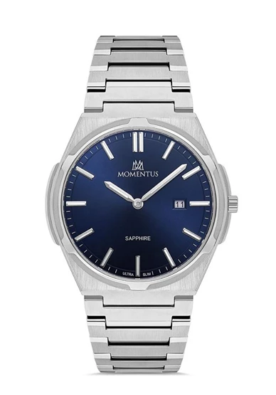 Momentus EM390S-11SS Safir Camlı Çelik Kordon Çelik Kasa 3 ATM Suya Dayanıklı Metalik Renk Erkek Kol Saati