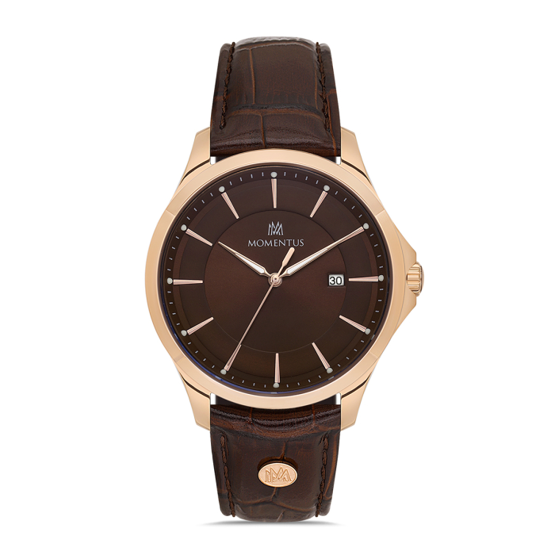 Momentus KC361R-06KR Deri Kordon Çelik Kasa 5 ATM Suya Dayanıklı Kahverengi Renk Erkek Kol Saati Çok Renkli