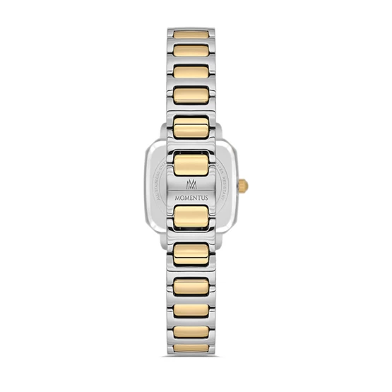 Momentus SS398T-02SG Taşlı Tasarım Kare Kadranlı Çelik Kordon Çelik Kasa 3 ATM Suya Dayanıklı Altın Renk Kadın Kol Saati Çok Renkli