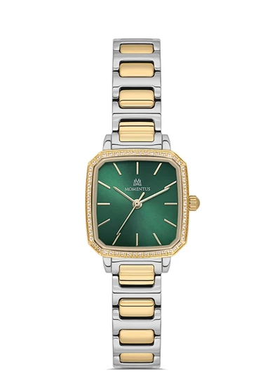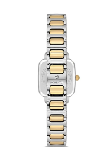 Momentus SS398T-15SG Taşlı Tasarım Kare Kadranlı Çelik Kordon Çelik Kasa 3 ATM Suya Dayanıklı Metalik-Altın Renk Kadın Kol Saati Çok Renkli