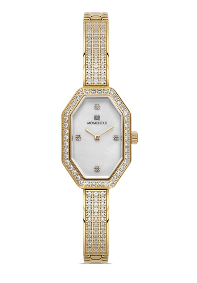 Momentus SS406G-09SG Tasarım Kadran Taşlı Tasarım 3 Atm Suya Dayanıklı Altın Renk Kadın Kol Saati