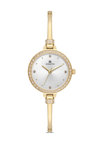 Momentus SS408G-02SG Taşlı Tasarım 5 Atm Suya Dayanıklı İnce Zarif Kordon Altın Renk Kadın Kol Saati