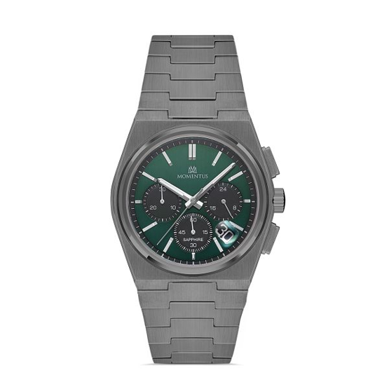 Momentus TM345N-15SS Fonksiyonlar Aktif Bombeli Takvim Çelik Kasa Çelik Kordon Füme Erkek Kol Saati