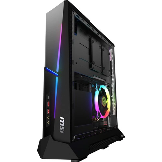 MEG Trident X, en kompakt masaüstü oyun bilgisayarı olarak kontrolü ele alıyor. Yalnızca 10,36 litrelik bir hacimde en yeni 10.Nesil Intel® Core™ işlemci ve NVIDIA® GeForce® RTX ekran kartı da dahil olmak üzere büyük kasalarda bulunan tüm bileşenlere sahip. Kolay erişim için özel olarak tasarlanmış olan MEG Trident X, güçlendirilmiş “tempered glass” yan paneli saesinde hem çarpıcı RGB ışıklandırmasını dışarıdan izleme, hem de iç donanımına rahatça ulaşma fırsatı verir. MEG Trident X’in rakibi yalnızca kendisi!