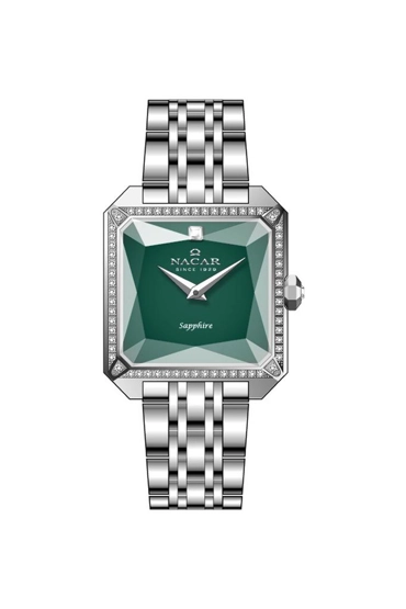 Nacar NC33-398387-ANMS Safir Camlı Minimal Taşlı Tasarım 3 ATM Suya Dayanıklı Çelik Kordon Metalik Renk Kadın Kol Saati