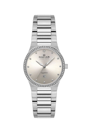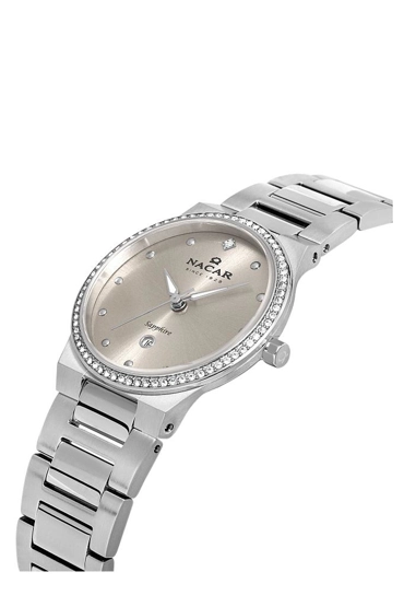 Nacar NC34-39B647-AGMS Kadın Safir Çizilmez Cam Taşlı Tasarım Metalik Kol Saati