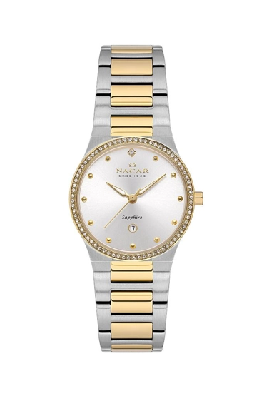 Nacar NC34-39B647-CSMS Kadın Safir Çizilmez Cam Taşlı Tasarım Metalik-Altın Kol Saati
