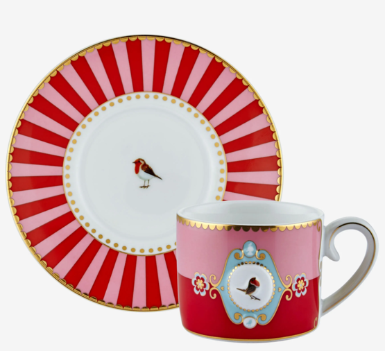 Pip Studio Love Birds Collection Porselen Kahve Fincanı Kırmızı