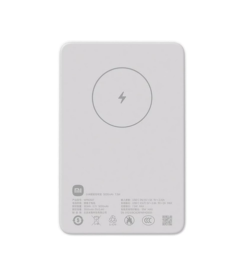 Kompakt ve kablosuz, takıldığı an şarj etmeye başlar *Xiaomi Manyetik Taşınabilir Şarj Cihazı 5000 mAh, 2800 mAh (5 V / 2,4 A) nominal kapasiteye sahiptir. Resmi MagSafe koruyucu kılıfla eşleştirilebilir. *Etiket bölümü bölgeden bölgeye değişiklik gösterir lütfen her bölgenin kendi versiyonuna göz atın. Uçak yolculuğuna uygundur* Güçlü ve hassas manyetik çekim iPhone 12 ve sonraki modeller için tasarlanmıştır Otomatik algılama özellikli kablosuz şarj Düğmesiz: Şarj etmek için takmanız yeterli İnce 12 mm gövde Şarj geçişini destekler 5000 mAh kapasite USB-C iki yönlü hızlı şarj Şarj etmek için takmanız yeterli Güçlü ve stabil manyetik çekim MagSafe şarj teknolojisine sahip mıknatıslar kusursuz bağlantı ve anında şarj için mükemmel şekilde hizalanır. Güçlü 10 N manyetik kuvvetle*, kılıf takılıyken dahi iyi performans gösterir*. İnce 12 mm gövde iPhone'lardan bile daha kompakt tasarım Şarj sırasında kesintisiz kullanım için kamerayı engellemeden iPhone'lara yakın şekilde takılır. 5000 mAh kapasite iPhone'unuz için ikinci bir pil görevi görür iPhone 15'i yaklaşık bir kez* tam şarj edebilir, böylece dışarıda geçirdiğiniz bir gün boyunca daha fazla şarjınız olur. USB-C iki yönlü hızlı şarj Öncekinden daha hızlı şarj eder Maksimum 18 W kablolu çıkış gücü ve iPhone'lar için maksimum 20 W giriş gücü ile yaklaşık 2,2 saatte tam şarj sağlar*. Hem kablolu hem de kablosuz şarjı destekler Birden fazla cihazı şarj etme İki cihazı aynı anda şarj etmek için aynı anda kablolu ve kablosuz çıkışı destekler. Taşınabilir şarj cihazı şarj olurken kablosuz çıkışı destekler. Bu ürün bir taşınabilir şarj cihazı ve bir kablosuz şarj pedi içerir. NTC sıcaklık kontrol sistemi Cihazınızın zarar görmesini önlemek için akıllı sıcaklık kontrolü Son derece güvenilir bir sıcaklık kontrol sistemi için dahili yazılıma sahip, teknolojik olarak gelişmiş iki NTC termistör. Cihaz, sıcaklık değişikliklerini izler ve şarj işleminin cihaza zarar vermemesi için gücü otomatik olarak ayarlar. Model WPB0507 Pil tipi Lityum iyon pil Nominal kapasite 2800 mAh (5 V/12,4 A) Nominal enerji 18,5 Wh 3,7 V 5000 mAh Giriş bağlantı noktası USB-C® Çıkış bağlantı noktası USB-C Giriş parametreleri USB-C (GİRİŞ) 5 V⎓3 A 9 V⎓2,22 A Kablosuz çıkış 7,5 W MAKS. Kablolu çıkış USB-C (ÇIKIŞ) 5 V⎓2,4 A 9 V⎓2 A MAKS. Eşzamanlı kablolu ve kablosuz çıkış 10 W MAKS. Ürün boyutları 103,7 x 68,3 x 12 mm