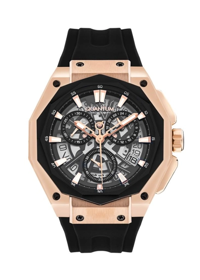 Quantum HNG1097.851 Tüm Fonksiyonları Aktif Silikon Kordon Çelik Kasa Kronograf 10 ATM Suya Dayanıklı Siyah Renk Erkek Kol Saati