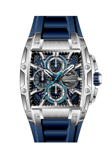 Quantum HNG1161.359 Kronograf Tüm Fonksiyonları Aktif 5 ATM Suya Dayanıklı Silikon Kordon Lacivert Erkek Kol Saati