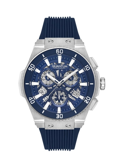 Quantum PWG1129.399 Tüm Fonksiyonları Aktif Silikon Kordon Çelik Kasa Kronograf 10 ATM Suya Dayanıklı Lacivert Renk Erkek Kol Saati Çok Renkli