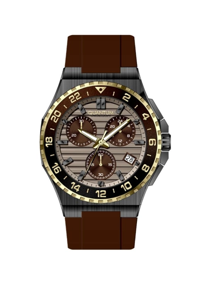 Quantum PWG1147.072 Kronograf Tüm Fonksiyonları Aktif 10 ATM Suya Dayanıklı Silikon Kordonlu Kahverengi Erkek Kol Saati