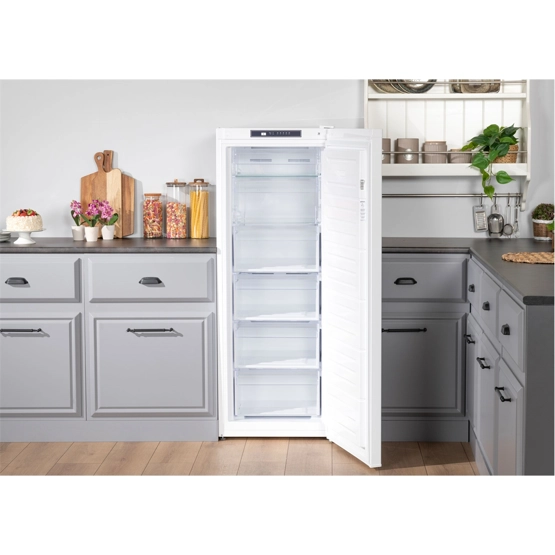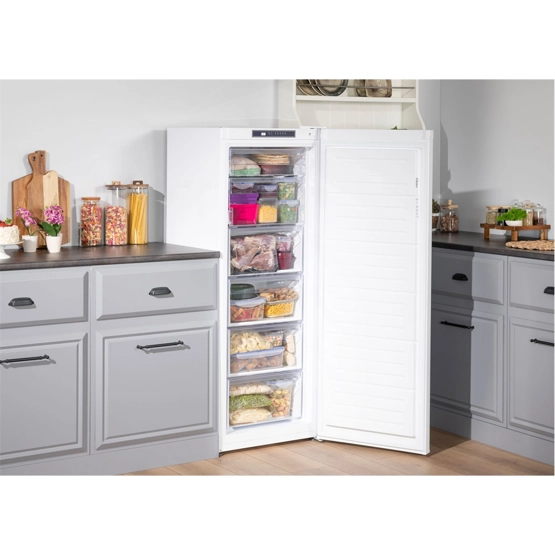 Çok Yönlü Soğutma Sistemi Çok Yönlü Soğutma Sistemi teknolojisi sayesinde rafların her birine ayrı ayrı hava akışı olur ve dengeli bir soğutma sağlanmış olur. Böylelikle derin dondurucunuzun her rafında aynı seviyede tazelik yakalanır. Hızlı Dondurucu Modu Hızlı Dondurucu Modu sayesinde yiyecekleriniz daha hızlı dondurulur ve zamandan tasarruf sağlamış olursunuz. Elektronik Kontrol Paneli Derin dondurucunuzda bulunan elektronik kontrol paneli sayesinde sıcaklık ve mod ayarlarını yapabilirsiniz. Değiştirilebilir Kapı Açılış Yönü Değiştirilebilir kapı yönü sayesinde konuma uygun olarak ürün kapısını sağ veya sola açılacak şekilde ayarlayabilirsiniz. Genel Özellikler Ürün Rengi : Beyaz Ürün Boyutları (cm) (YxGxD) : 145,5x54x59,5 Genişlik (cm) : 54 Soğutma Tipi : No Frost Çekmece Sayısı : 4 Adet Çekmece, 2 Adet Kapaklı BölmeKullanım Kolaylığı : Değiştirilebilir Kapı Açılış Yönü : Var Performans / Tüketim Bilgileri : Ses Seviyesi (dBA) : 41 dB Enerji Tüketimi (kWh/Yıl) : 212 Enerji Sınıfı : E Teknolojik Özellikler Elektronik Kontrol Paneli : Var Hızlı Dondurucu Modu : Var
