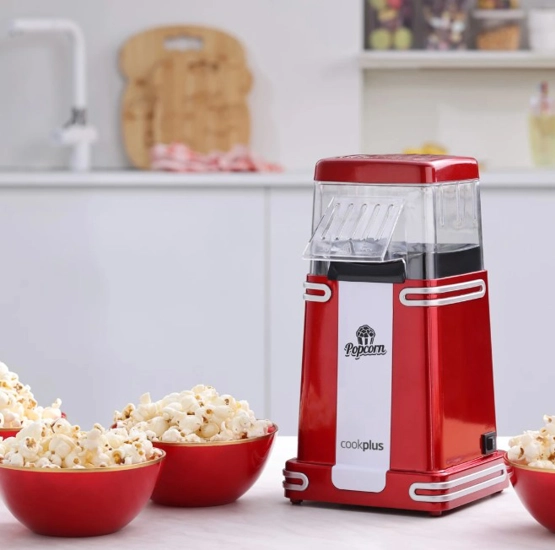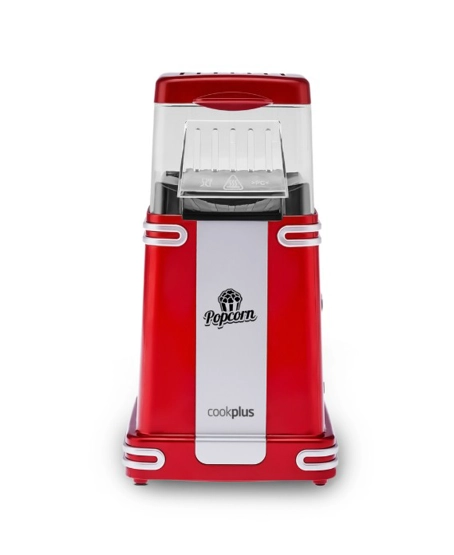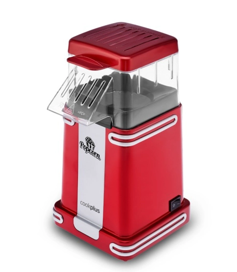 Cookplus Retro Popcorn Makinesi Küçük Cookplus Retro popcorn makinesinin, kullanımı kolaydır, yağ ve tuz eklemeden sağlıklı popcornlar hazırlayabilirsiniz. Yapışmaz mısır patlatma yüzeyi bulunmaktadır. Sağlıklı atıştırmalar için sıcak hava ve yağsız kullanım özelliği ile 1 ölçek mısırı 5 dakikada hazırlar. Popcorn yapımı Ölçü kabı yardımı ile 1 ölçek mısırı hazneye ekleyiniz. Sağlıklı popcornlar için tasarlandığından hazne içine tuz ve yağ eklenmemelidir Cihazınızı çalıştırınız, 5 dakika için de popcornunuz hazırdır, afiyet olsun. Temizleme: Çıkarılabilir bir üst kapağı vardır. Patlamış mısır hazırladıktan sonra çıkarılabilir üst kapağı ve şeffaf mısır patlatma alanını su ile temizleyin. İç mısır patlatma haznesini sadece yumuşak nemli bir bezle silerek temizleyin. Cihazını bulaşık makinesine atmayın.