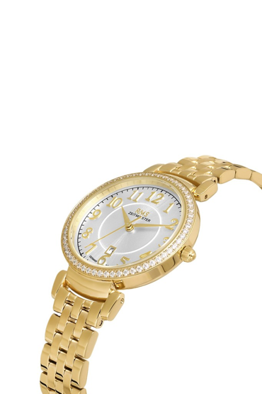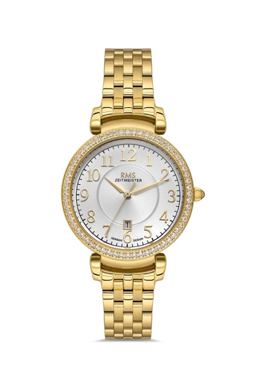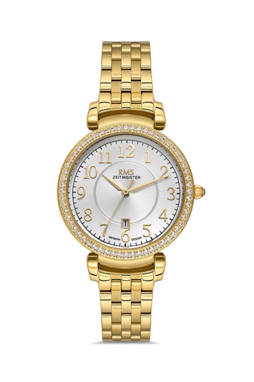 Rms Zeitmeister RMS.1.AG1103.03 Taşlı Tasarım Kristal Camlı Çelik Kordon Çelik Kasa 5 ATM Suya Dayanıklı Altın Renk Kadın Kol Saati