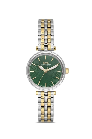 Rms Zeitmeister RMS.1.1AG1607.07 Minimal Tasarım Kristal Camlı Çelik Kordon Çelik Kasa 5 ATM Suya Dayanıklı Metalik-Altın Renk Kadın Kol Saati Çok Renkli
