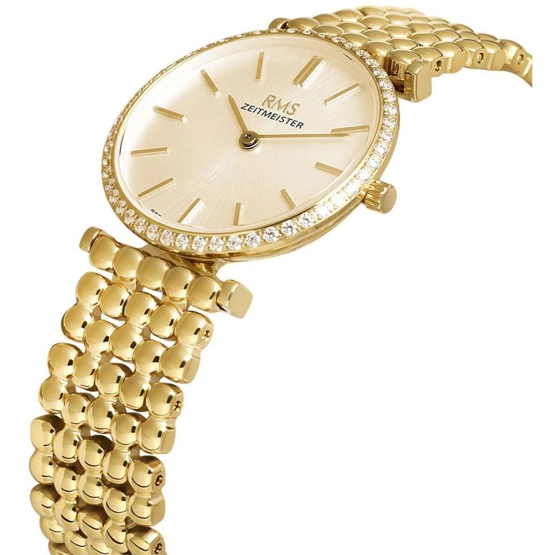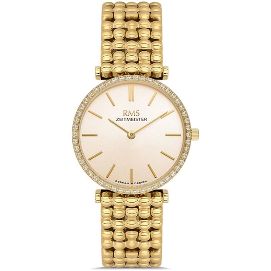 Rms Zeitmeister RMS.1.1AG1646.08 Taşlı Tasarım Kristal Camlı Çelik Kordon Çelik Kasa 5 ATM Suya Dayanıklı Altın Renk Kadın Kol Saati