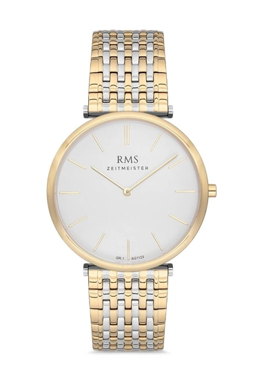 Rms Zeitmeister RMS.1.AG1123.03 Klasik Tasarım 5 ATM Suya Dayanıklı Çelik Kordon Altın Renk Erkek Kol Saati Çok Renkli