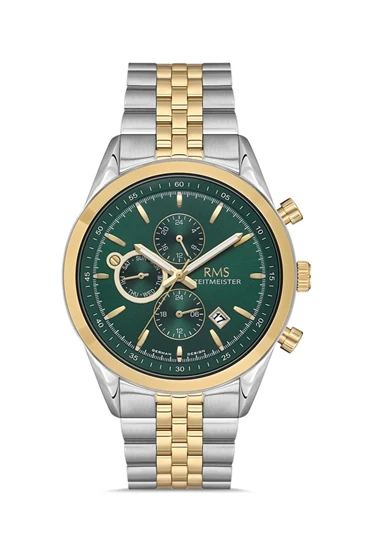 Rms Zeitmeister RMS.1.AG1163.13 Tüm Fonksiyonlar Aktif Kristal Camlı Çelik Kordon Çelik Kasa 5 ATM Suya Dayanıklı Metalik-Altın Renk Erkek Kol Saati